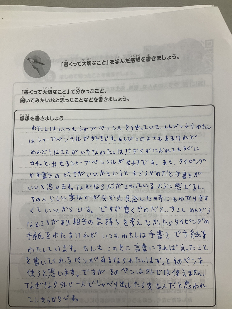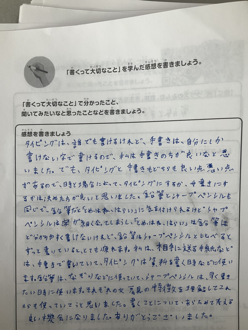 光塩女子学院初等科の 6年生の皆様より「書くって大切なこと」の授業を受けた感想を多数いただきました。
